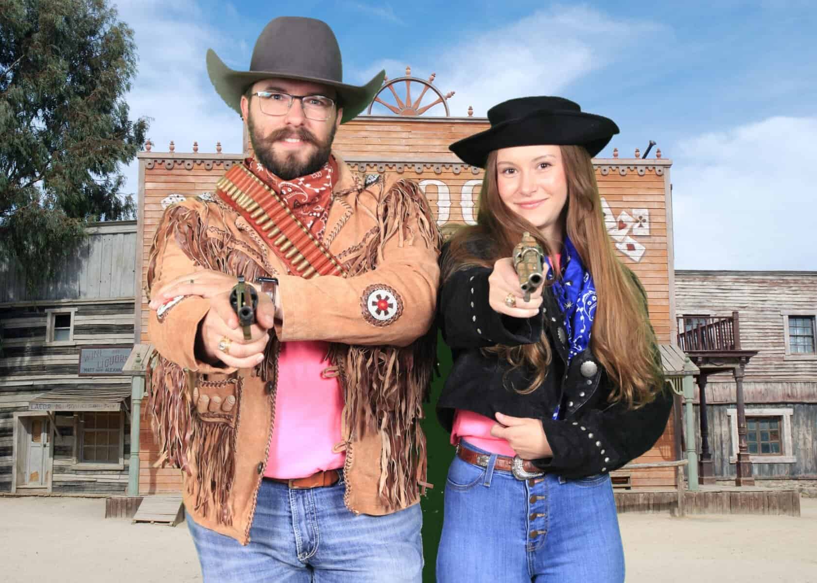 You get the full Wild West experience: authentic Western wardrobe and accessories, a professional green screen setup, and a staffed team to keep everything running smoothly. We guide guests through the process and produce polished “Old West” photos that feel like a real attraction at your event.